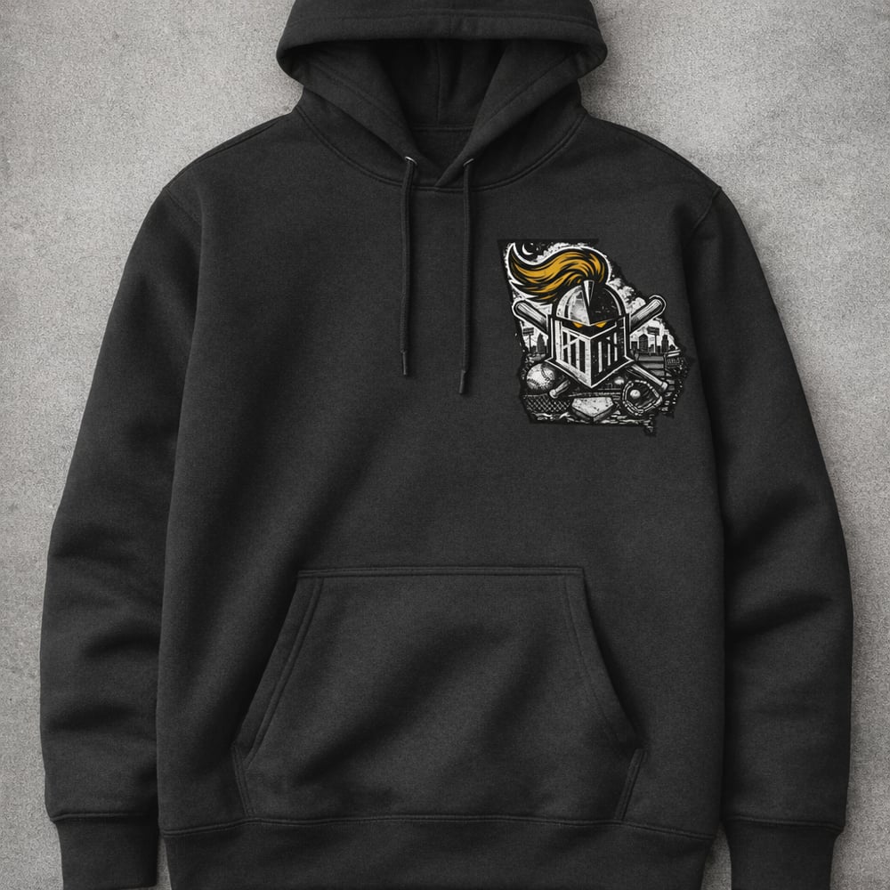 Pouch pocket; double-ply hood with grommets and matching drawcord